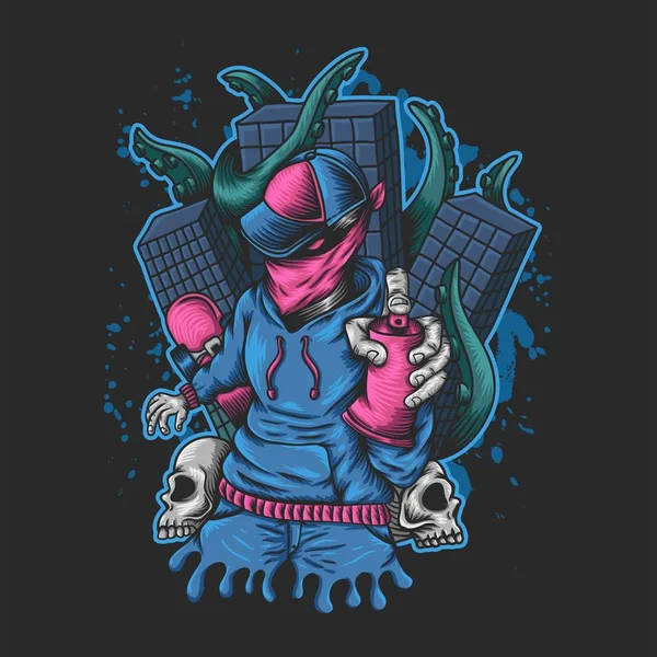 Skull Gangsta Street Boy Vector Illustration Art Background