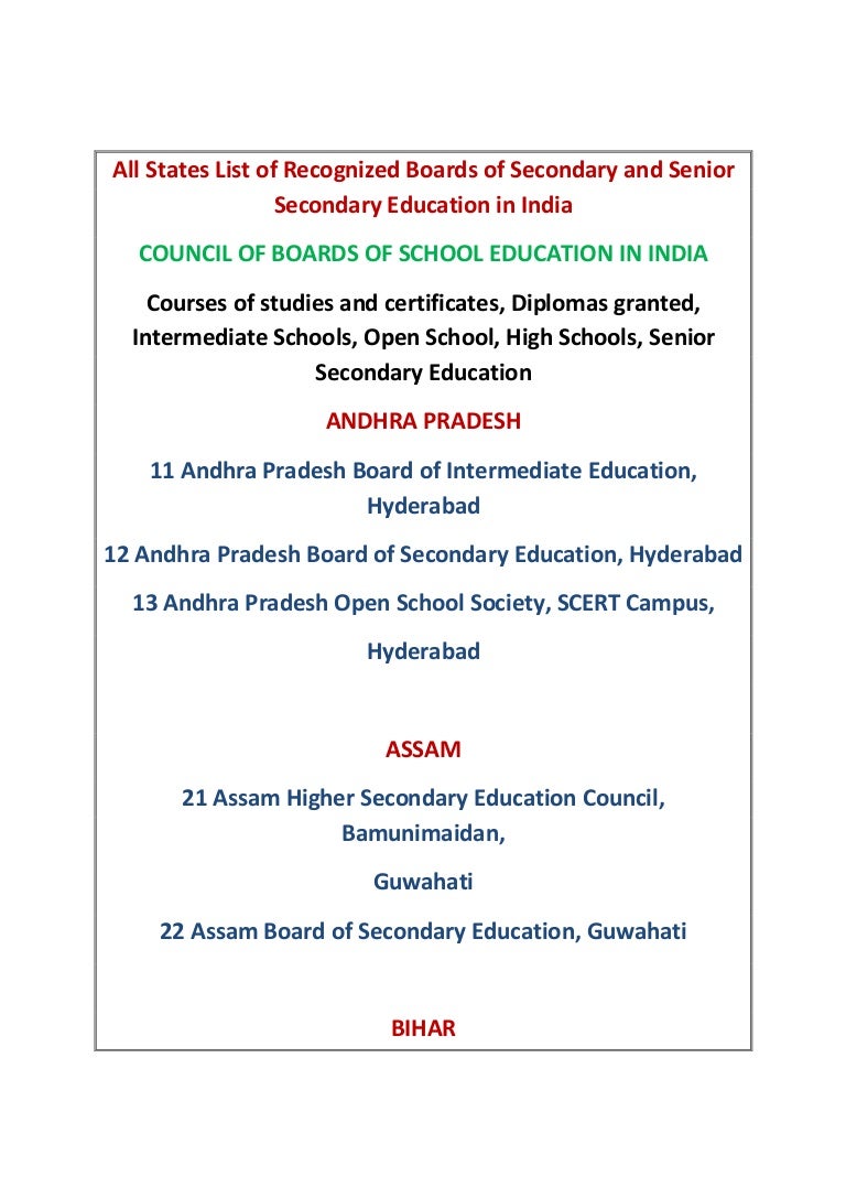 List Of All 10th Class Boards Exams In India All Class 10 Ssc