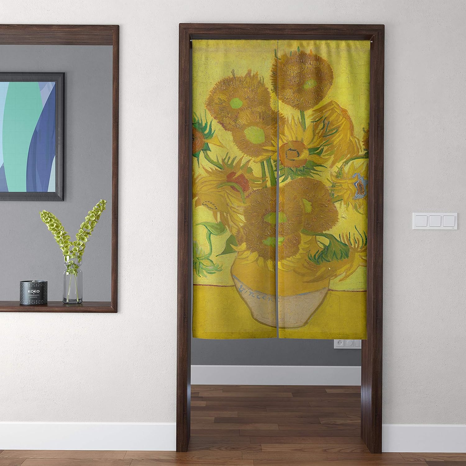 Spanker Yellow Artistic Oil Painting Van Gogh Masterpiece Sunflowers Aesthetic Japanese Noren Doorway Curtain Fabric Cotton Linen For Home Kitchen