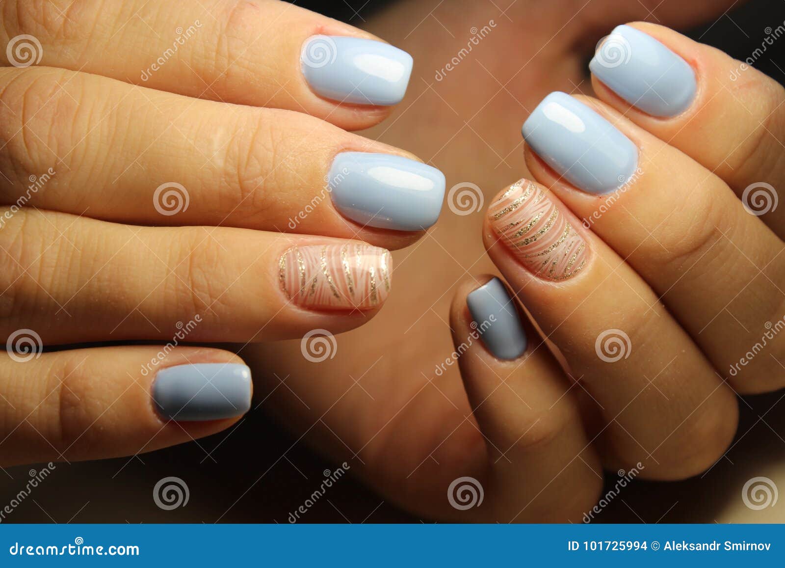 Manicure Design Lines Blue Nails Stock Photo Image Of