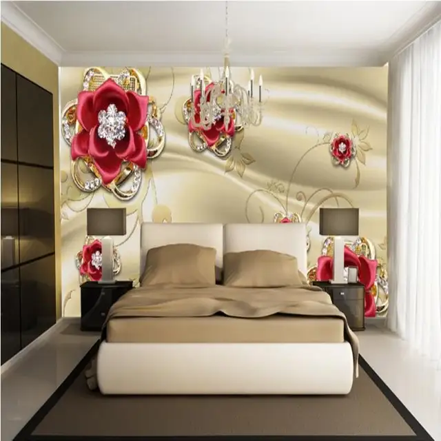Us 9 15 39 Off Beibehang Large Custom Wallpaper Gold Jewelry Diamond Red Rose Living Room Bedroom Sofa Tv Background Wall Decorative Painting In