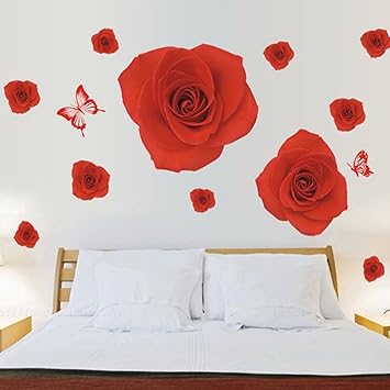 Buy Home Decor Red Rose Wall Stickers Murals Decal Removable